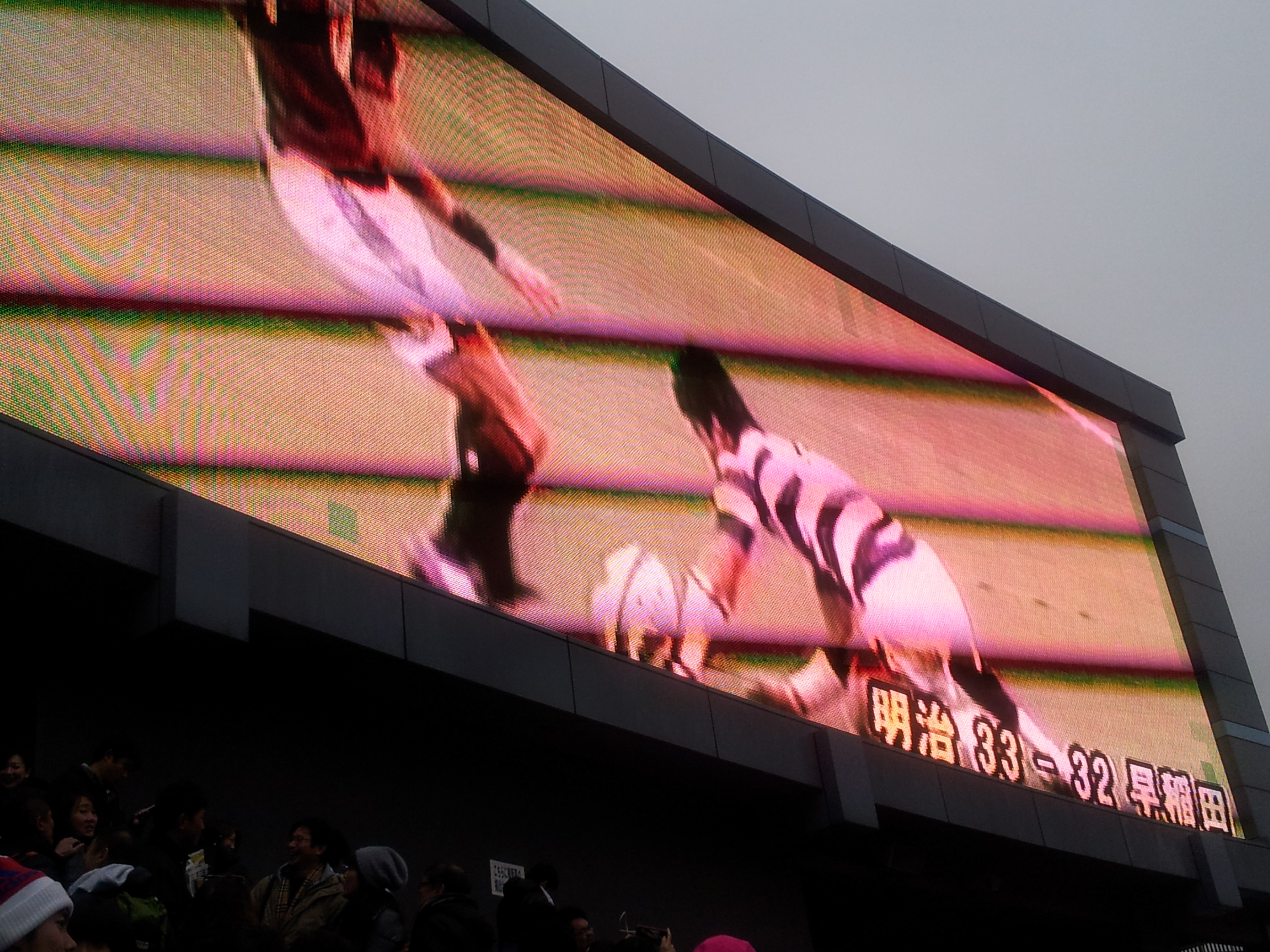 認定トライで6点差とした、ロスタイムの明治フォワードの怒涛の攻めに、スタンドは明治、明治の大合唱です。そしてついに全国の明治関係者が待ち望んだ瞬間が訪れました。