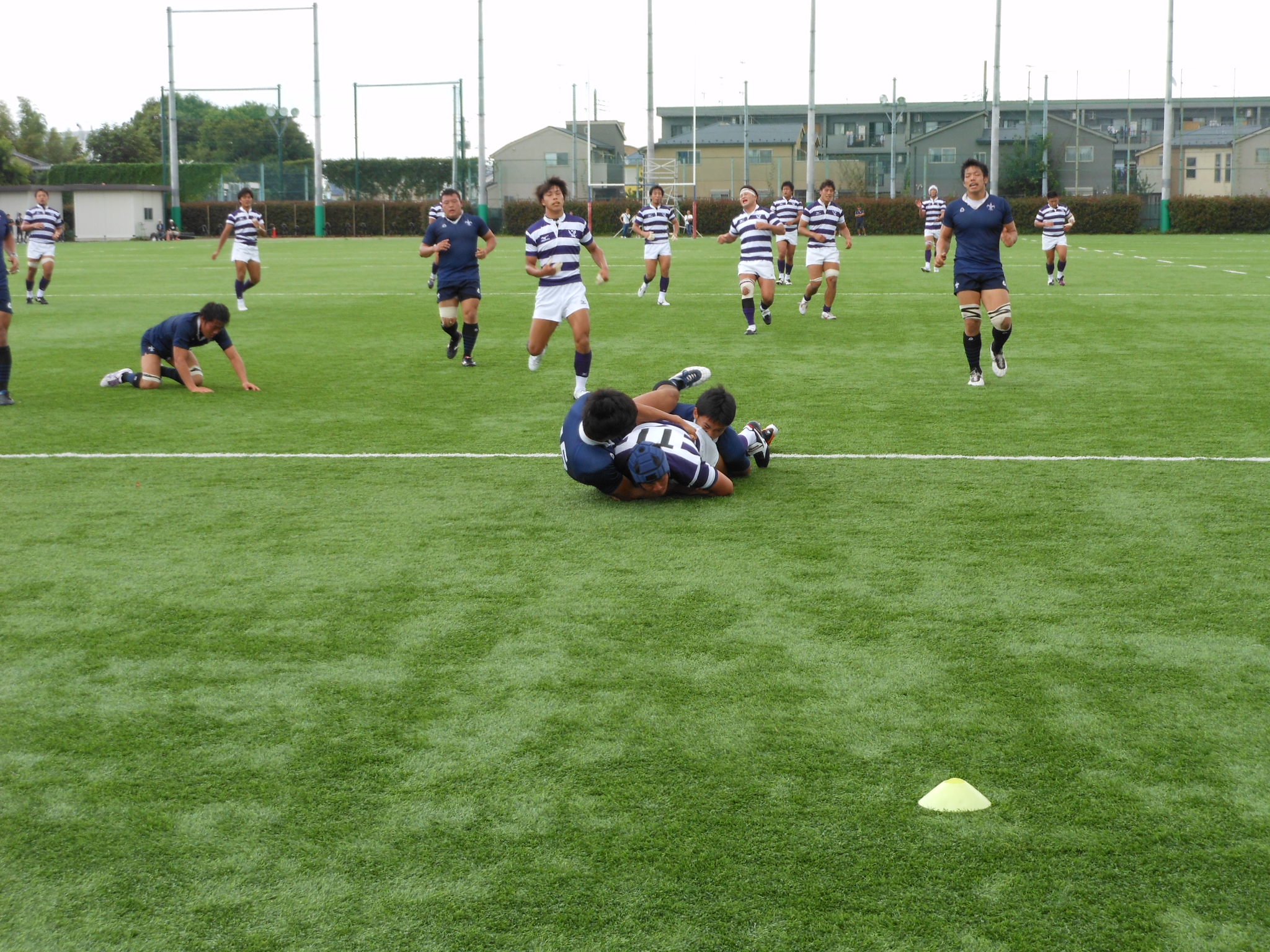 前半 19-5 後半 17-5 結果36-10で明治大学の勝利となり両校気持ちのこもったとてもいい試合でした。何より学生が普段練習しているグラウンドでの試合観戦だったのでラグビーのぶつかり合う迫力、選手たちの声を間近で見て聴く事ができました。ハーフタイムでは応援団吹奏楽部とチアリーディング部の演技もあり試合を盛り上げました。応援団の皆さんはいろいろな所で会を盛り上げる為に活動され本当にご苦労様だと思います。9月から始まる関東対抗戦では優勝に向け圧倒した試合結果を大いに期待したい所です!